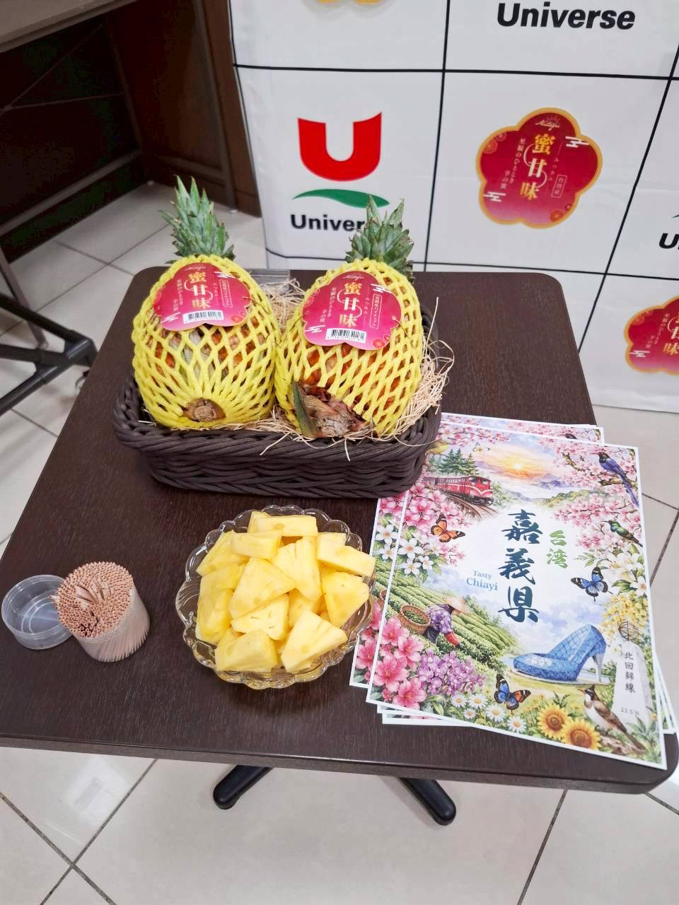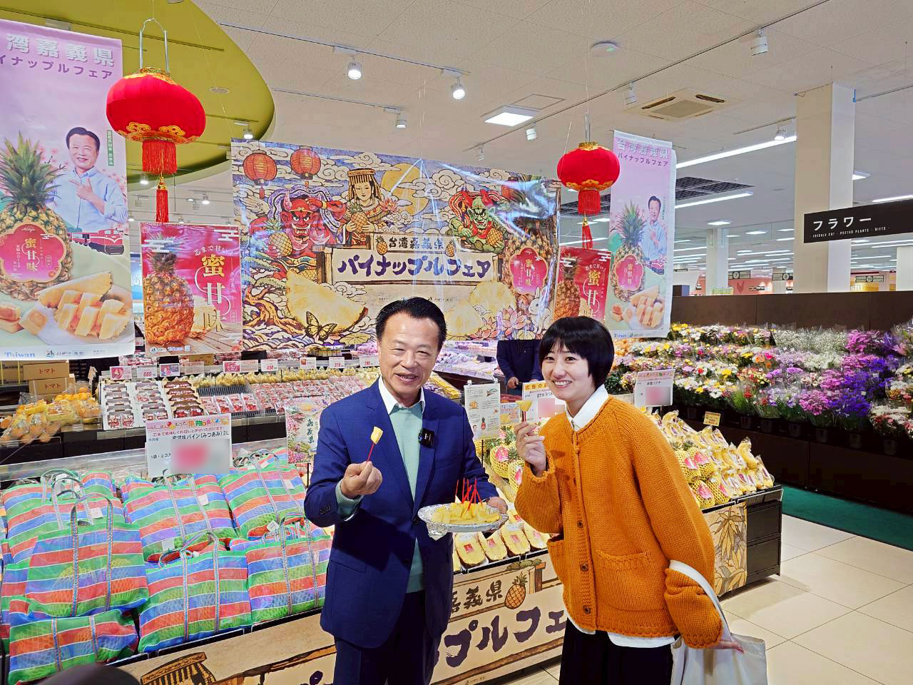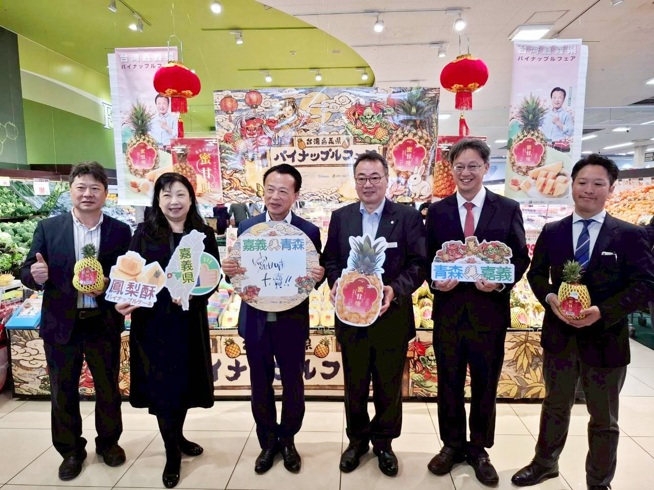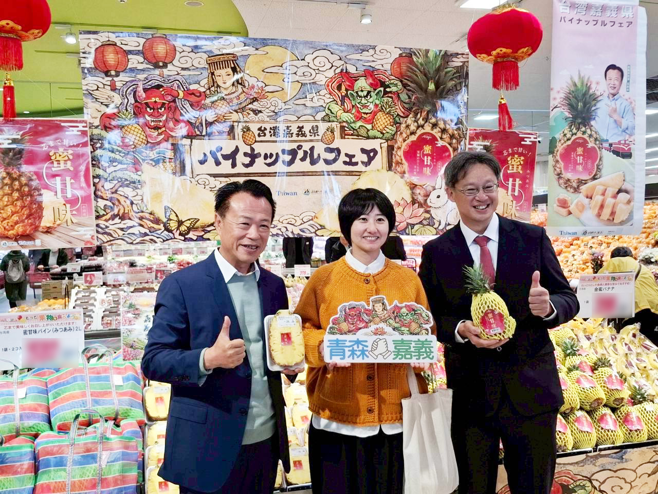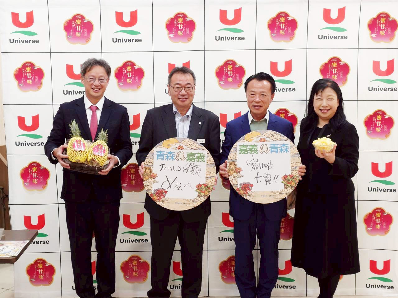 2026年4月10日,嘉義縣翁章梁縣長親自出席青森縣UNIVERSE超市活動現場,「嘉義縣鳳梨嘉年華」開幕!🎉